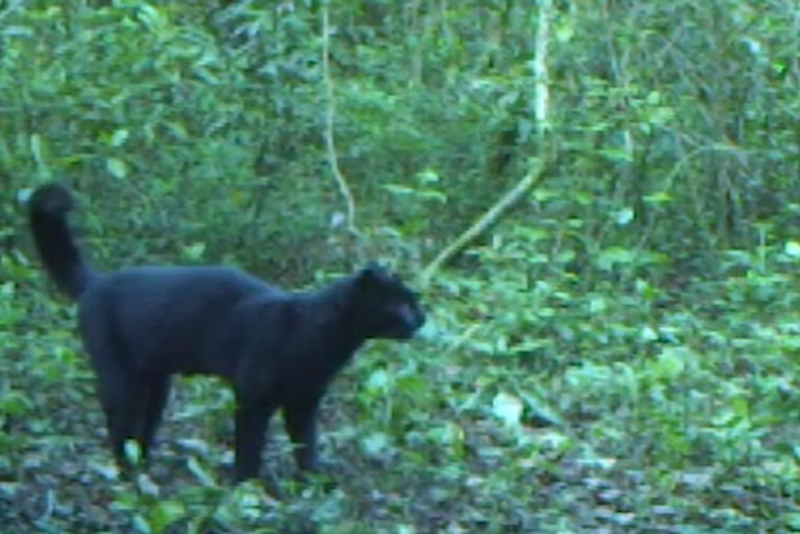 O felino na sua forma melânica foi flagrado através de uma armadilha fotográfica na mata ciliar do Arroio Pelotas, um dos dez pontos em monitoramento. Estas câmeras funcionam por sensores de movimento e calor corporal, sendo um dos métodos utilizados pelos técnicos da fauna para monitorar os mamíferos no entorno do empreendimento. Segundo a bióloga da STE S.A., Michele Buffon Camargo, o melanismo é uma mutação genética que confere pigmentação escura ao pelo do animal e o diferencia dos indivíduos pintados.