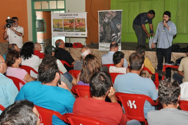 O educador ambiental Cauê Canabarro apresentando os programas da Gestão Ambiental da duplicação da BR-116/392 | Créditos: Solano Ferreira