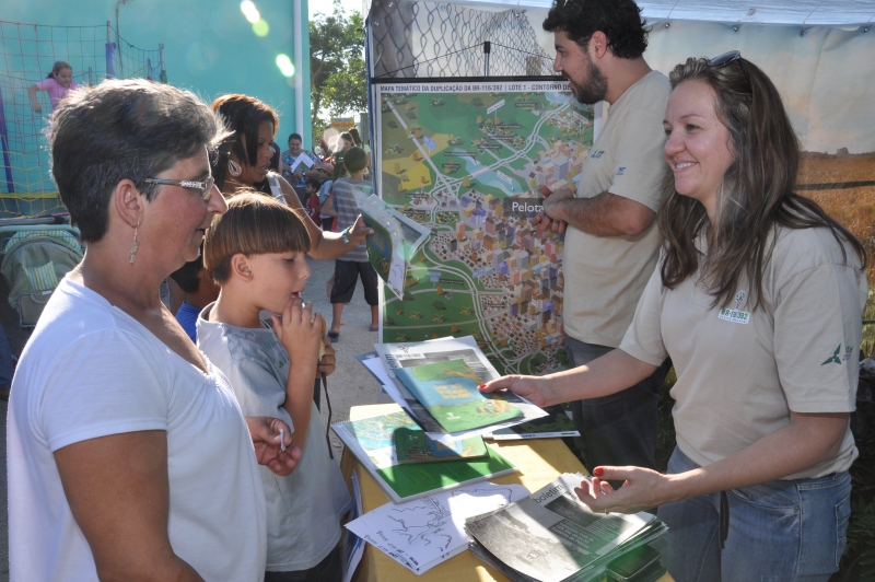 Em meio às diversas atividades alusivas ao aniversário da Escola, a equipe dos Programas de Educação Ambiental e Comunicação Social, desenvolvidos pela Gestão Ambiental da duplicação da BR-116/392, realizada pelo DNIT, participou da comemoração distribuindo Boletins Informativos, histórias em quadrinhos e desenhos para pintar.