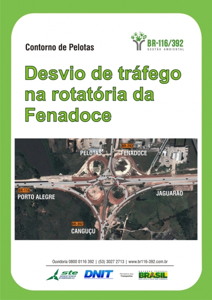 Veículos que trafegarem de Porto Alegre a Jaguarão serão direcionados para a alça lateral à direita, cruzando a BR-392 e retornando à BR-116. Quem vier da capital com destino a Canguçu também deverá utilizar esta alça, assim como quem sair de Pelotas pela BR-293 para chegar a Jaguarão. O fluxo de veículos seguirá normal para usuários que trafegarem de Pelotas ou de Jaguarão em direção a capital. Placas de sinalização orientam o trânsito no local.