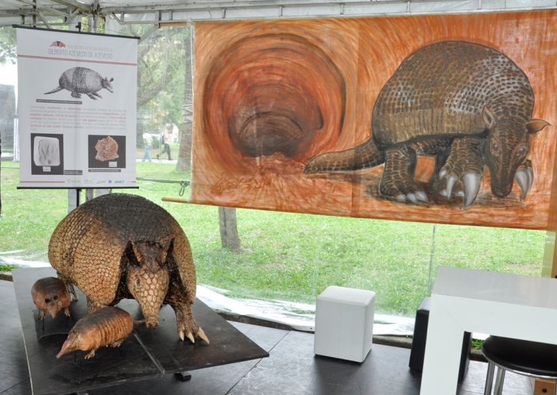 Em meio aos livros, um tatu gigante rouba a cena durante a 42ª Feira do Livro de Pelotas. Quem circula pela Praça Coronel Pedro Osório faz uma pausa para conhecer um pouco da história do mamífero extinto que habitou o distrito de Monte Bonito entre 10 e 40 mil anos atrás. A escultura está exposta no estande do Departamento Nacional de Infraestrutura de Transportes (DNIT) e faz parte do projeto de preservação de uma paleotoca encontrada durante a duplicação da BR-116.