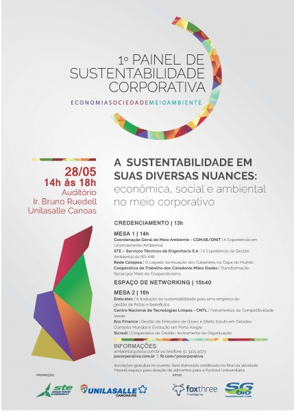 Trabalhar a sustentabilidade de forma integrada, constante e equilibrada tem sido um dos principais desafios das organizações na atualidade. Propondo uma discussão sobre o assunto, a STE S.A. em parceria com o Unilasalle realizam no dia 28/05, o 1º Painel de Sustentabilidade Corporativa.